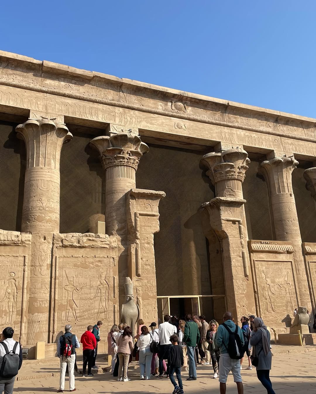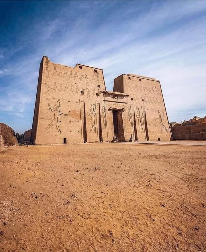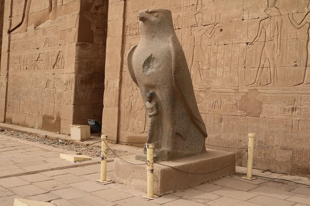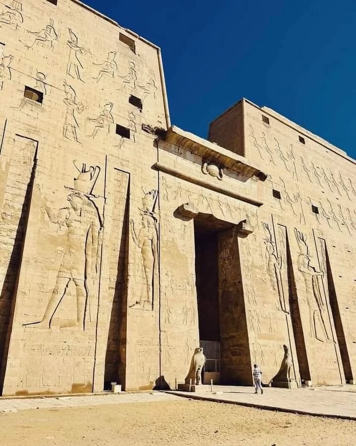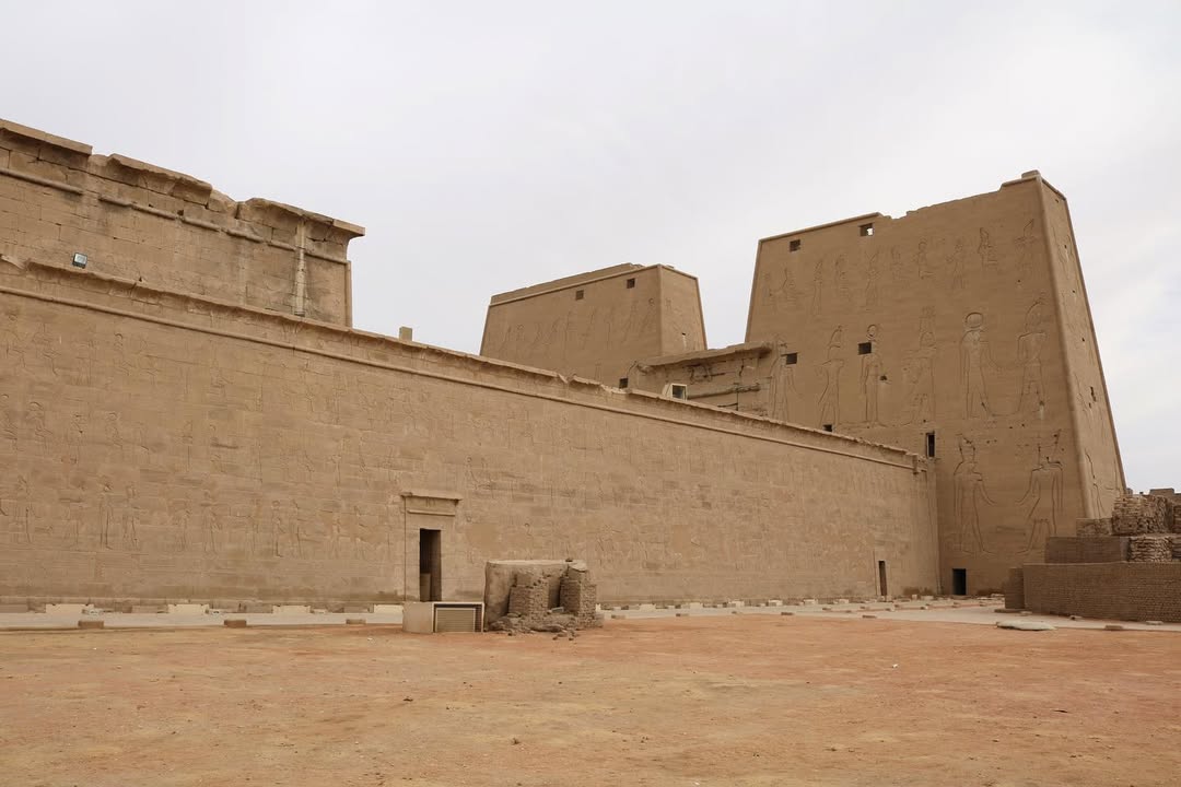 Edfu (Temple of Horus), located on the west bank of the Nile River in Upper Egypt, is one of the best-preserved ancient Egyptian temples and the second-largest after Karnak. Dedicated to the falcon-headed god Horus of Behdet, this magnificent structure was built during the Ptolemaic period between 237 and 57 BCE, under the reigns of Ptolemy III to Ptolemy XII.