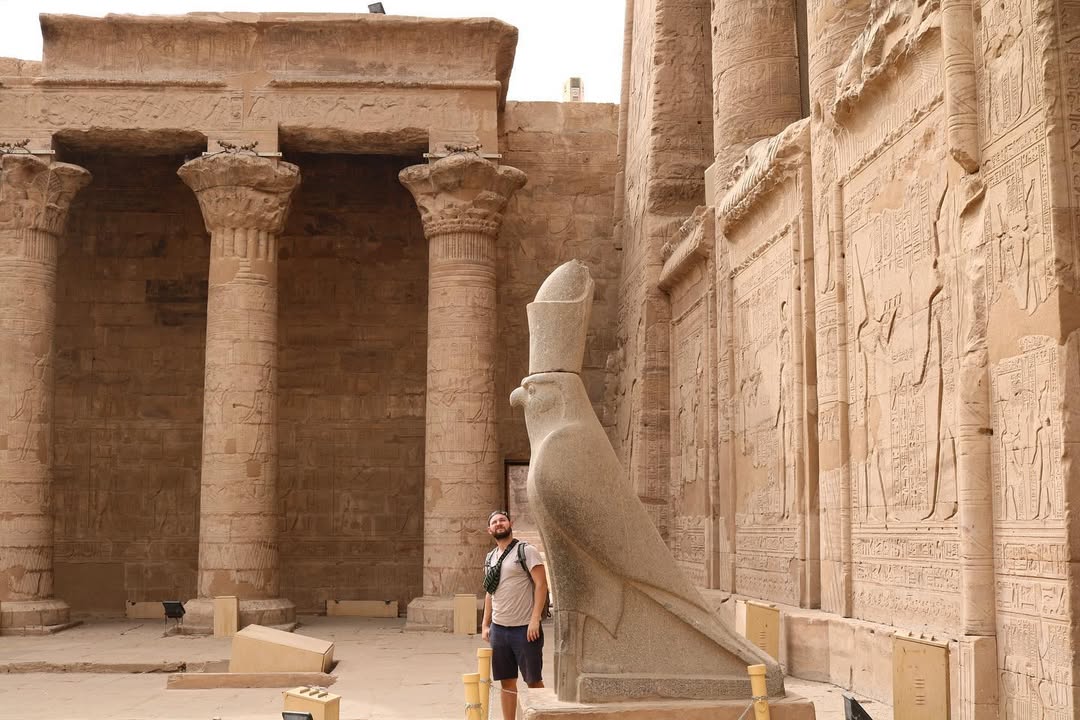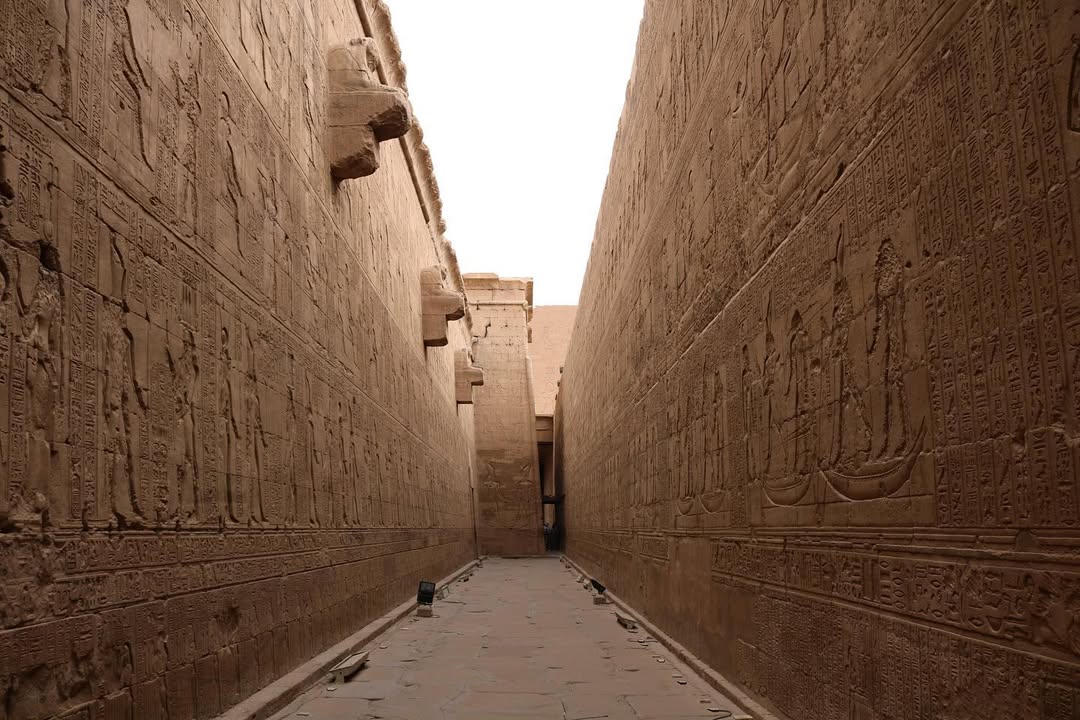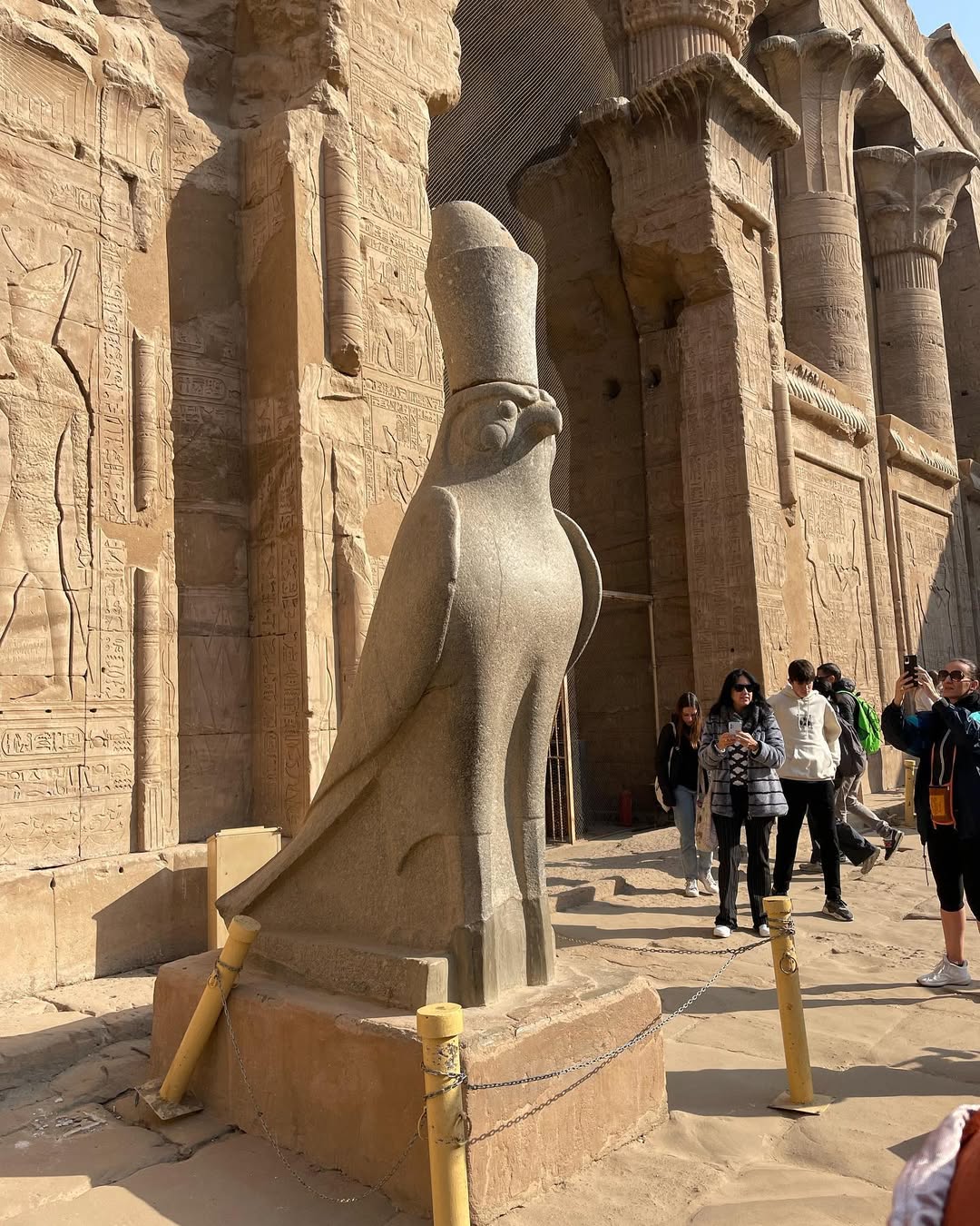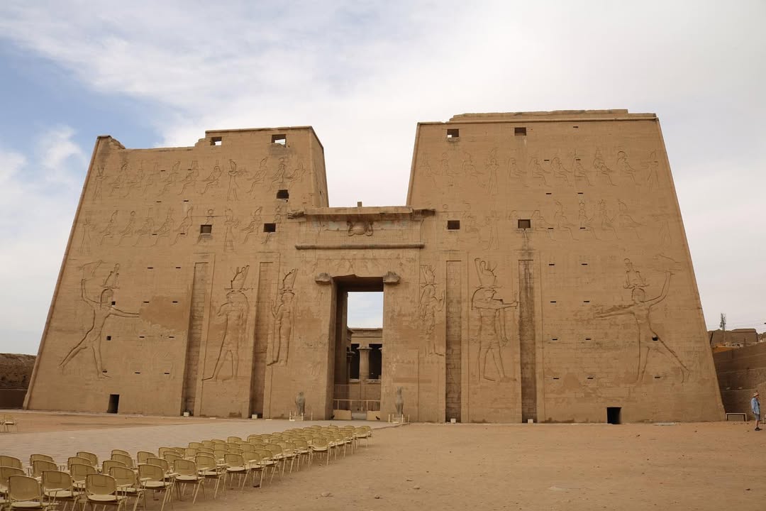 Edfu (Temple of Horus), located on the west bank of the Nile River in Upper Egypt, is one of the best-preserved ancient Egyptian temples and the second-largest after Karnak. Dedicated to the falcon-headed god Horus of Behdet, this magnificent structure was built during the Ptolemaic period between 237 and 57 BCE, under the reigns of Ptolemy III to Ptolemy XII.