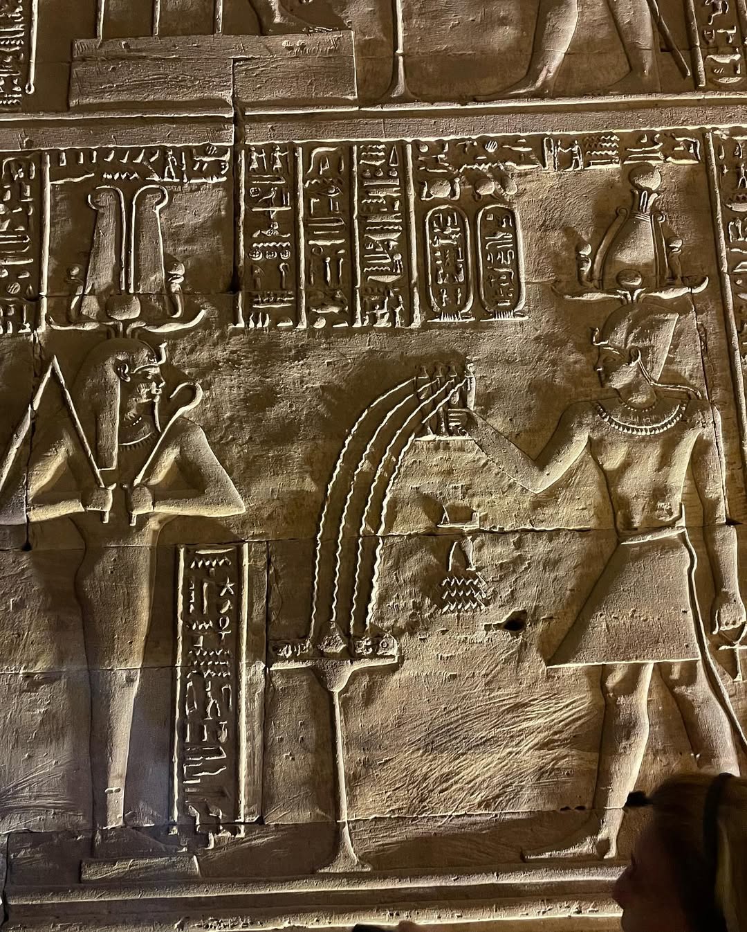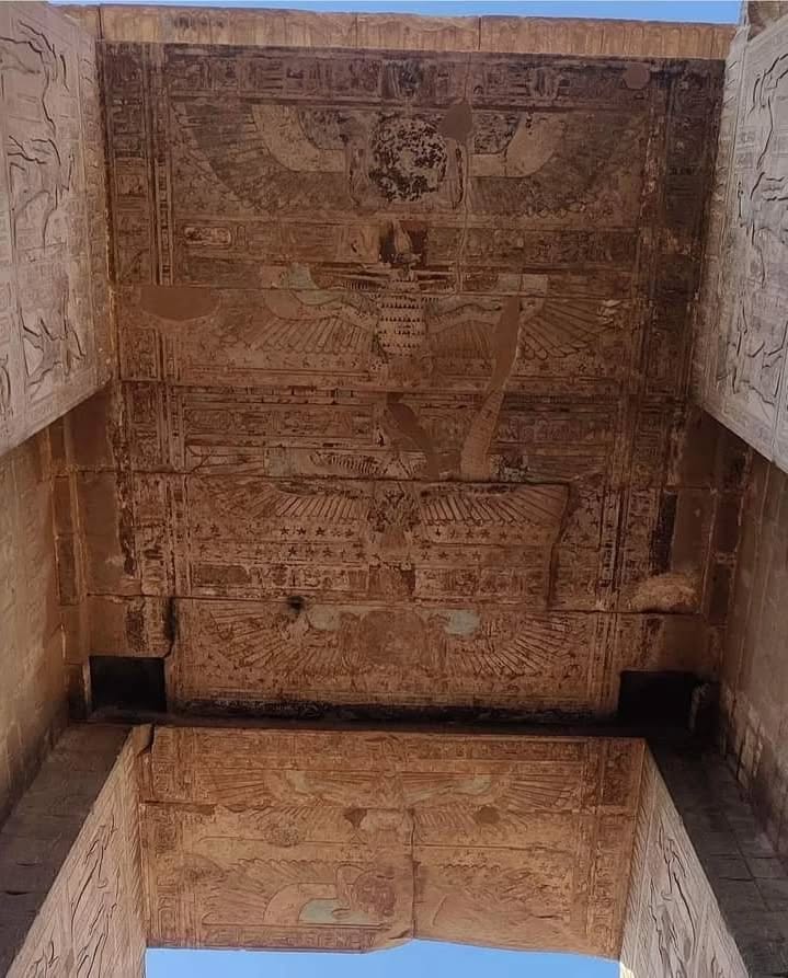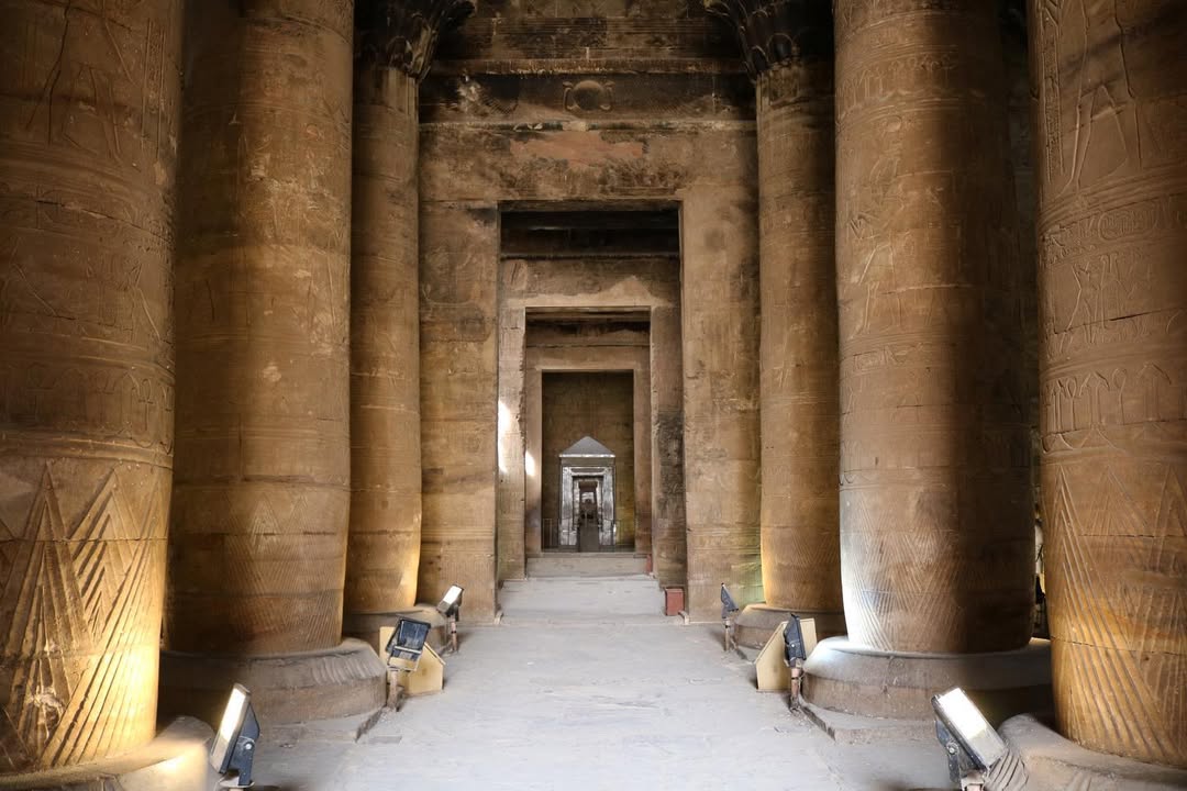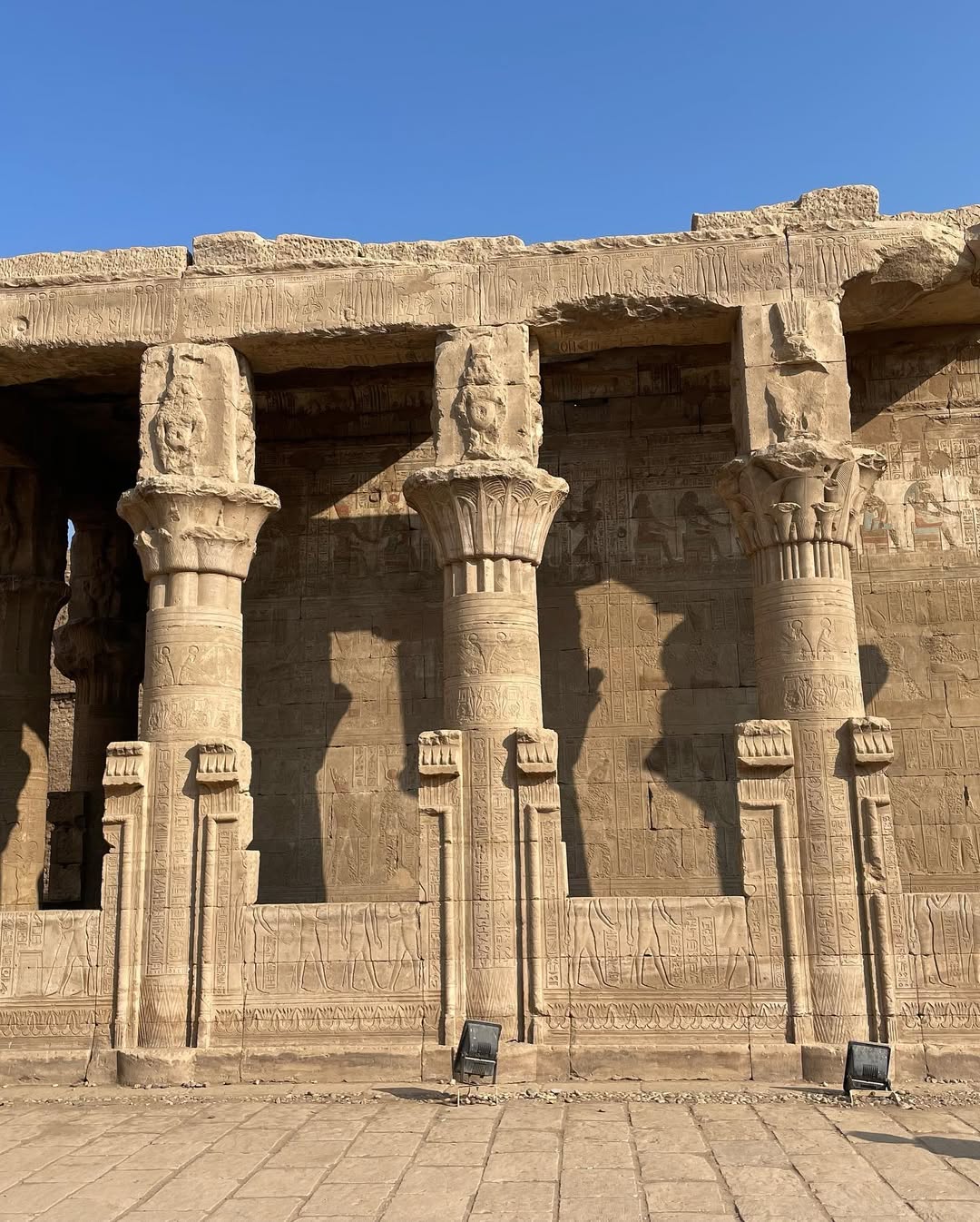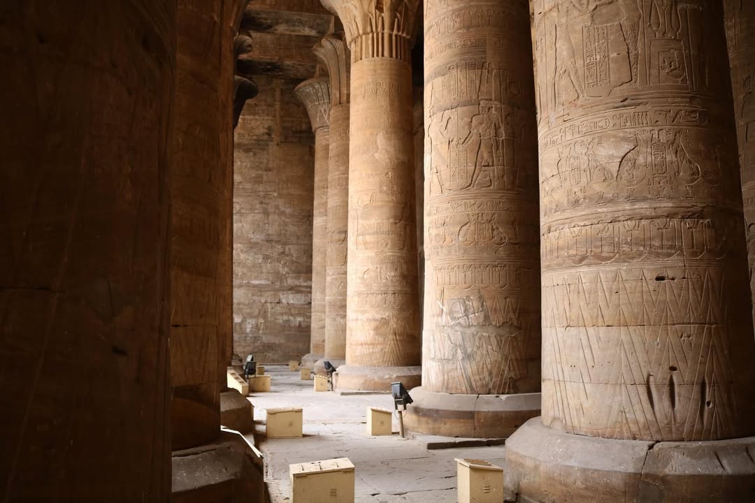 One of the most fascinating aspects of the temple is its well-preserved state, allowing visitors to experience an almost complete ancient Egyptian temple complex. The Great Pylon, standing at 36 meters (118 feet) tall, is decorated with colossal reliefs of the Ptolemies smiting their enemies before Horus and Hathor. Beyond the pylon lies the Peristyle Court, followed by the Hypostyle Hall, supported by towering columns with floral capitals.