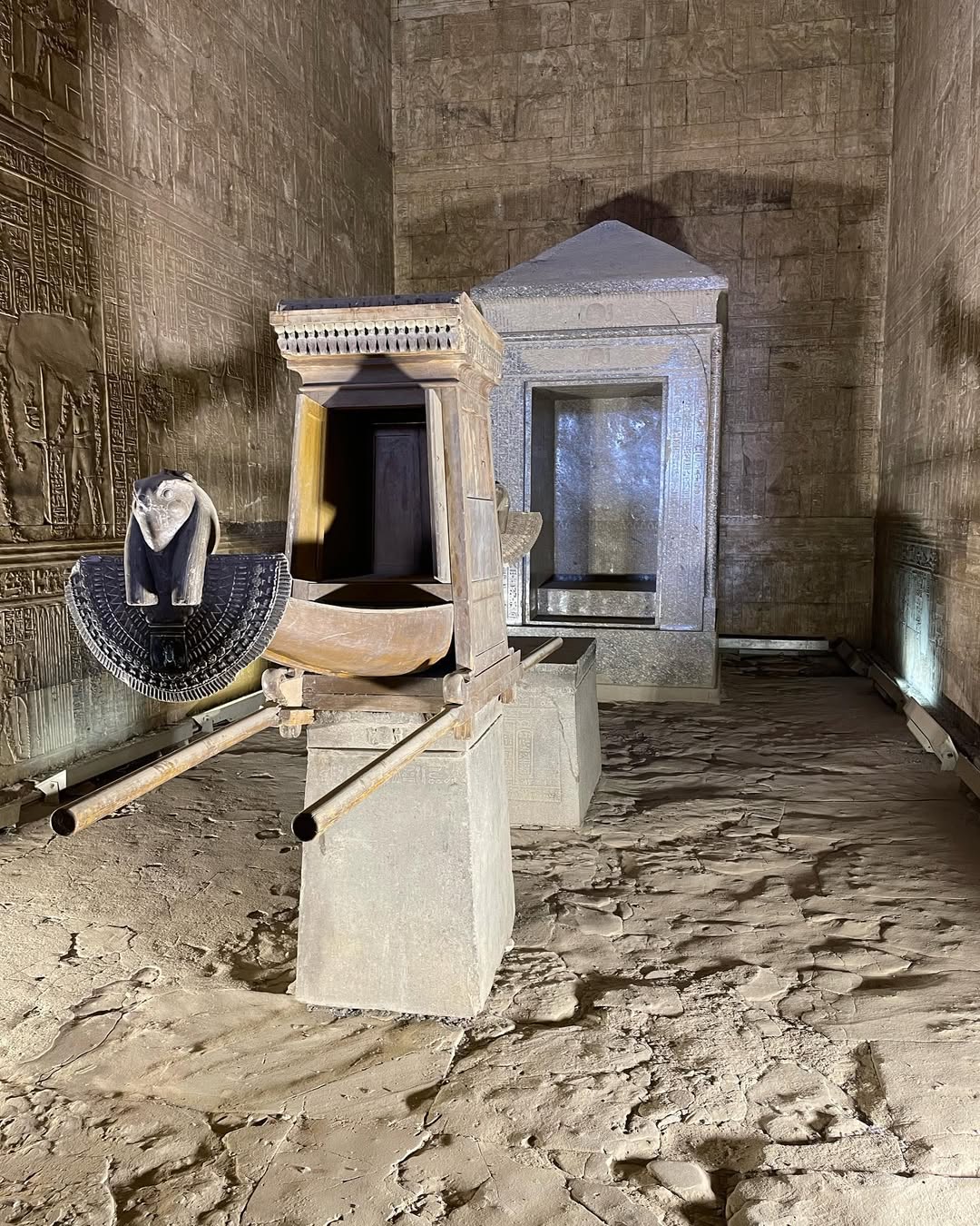 The inner sanctuary (naos) contains a granite shrine where the sacred barque of Horus was kept. Surrounding chambers served as storage rooms for ritual objects, while the walls narrate the temple’s foundation myth and its connection to the Ennead (the nine gods of Heliopolis). The temple also features a Nilometer, used to measure the Nile’s flood levels, crucial for agriculture in ancient Egypt.