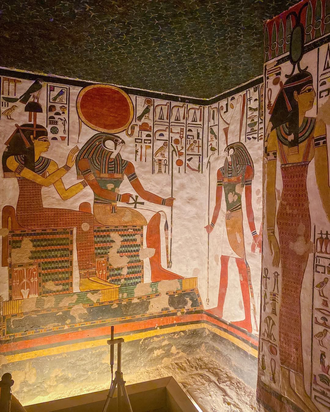 This beautifully decorated tomb belonged to a son of Ramses III. Visitors can admire: